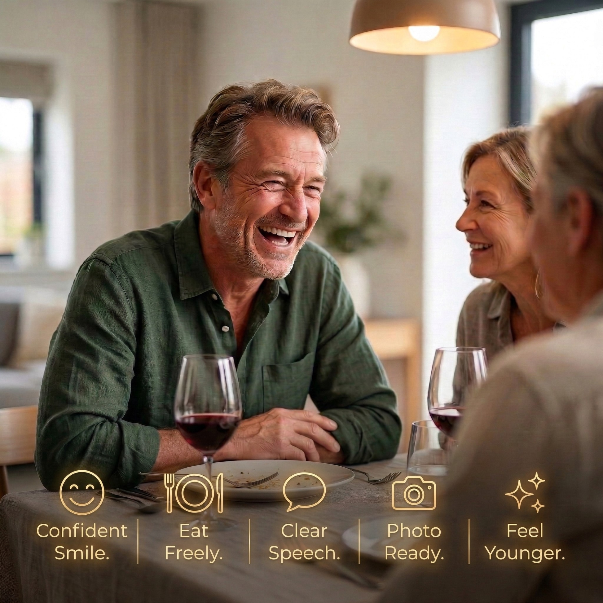 Jezte, mluvte a usmívejte se pohodlně—bez obav z posouvajících se protéz.