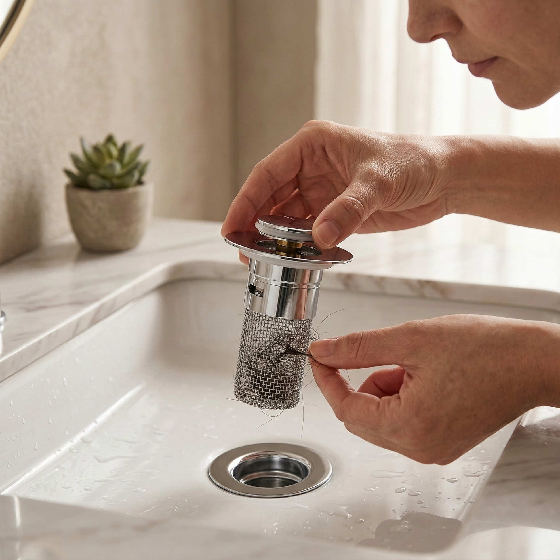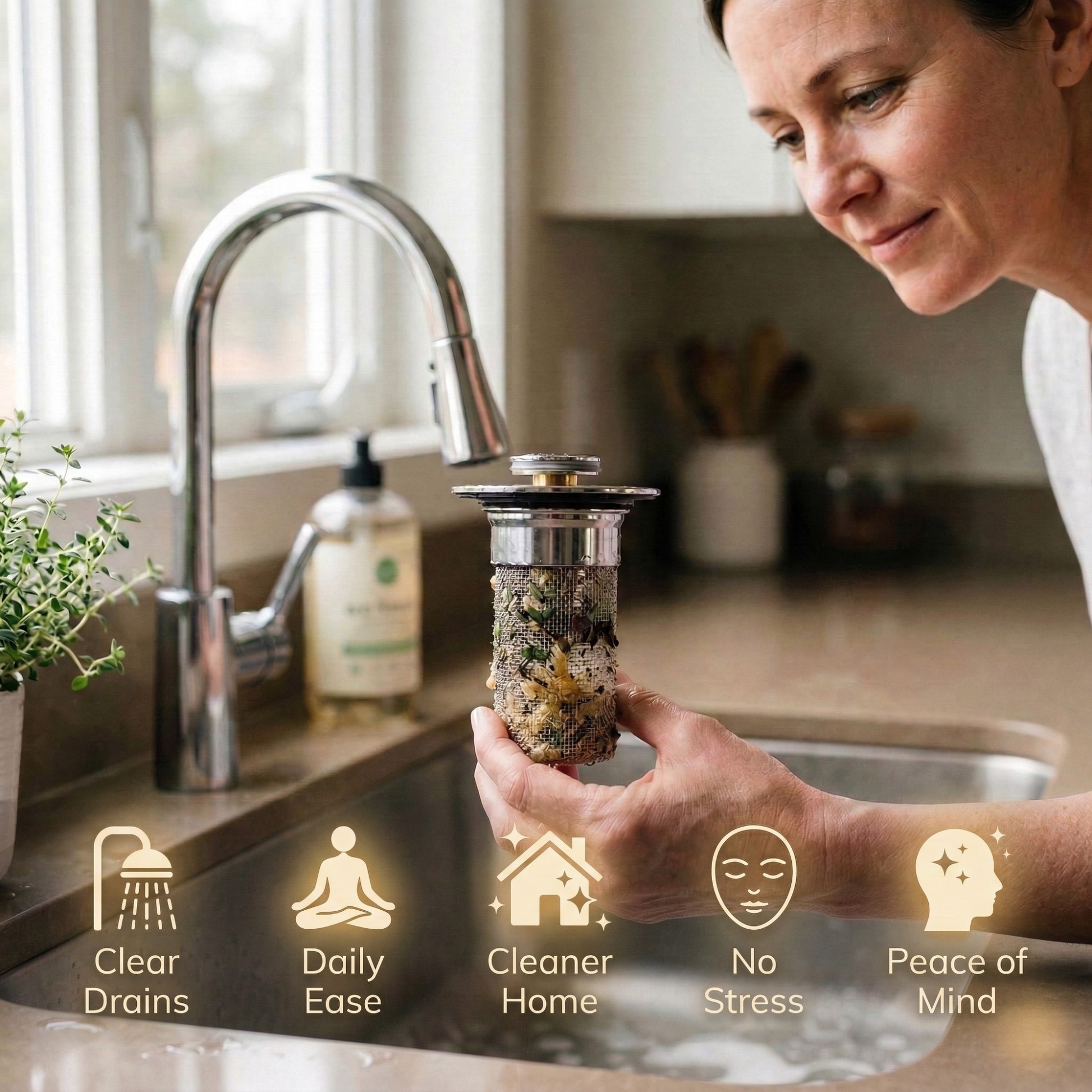 Tento filtr zachytává vlasy a nečistoty dřív, než vstoupí do odpadupomáhá udržet vaši kuchyň bez stresu a jednodušší.