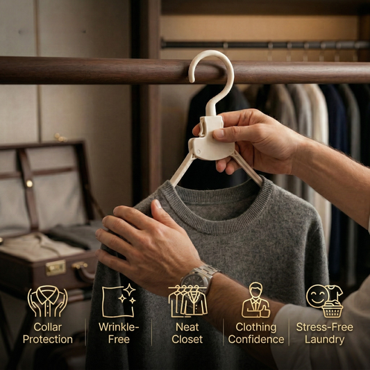 Sammenklappelig klemmebøjle - Hæng tøj op uden at strække kraver