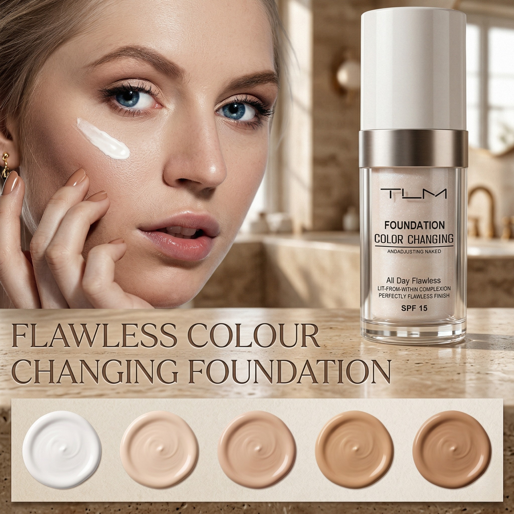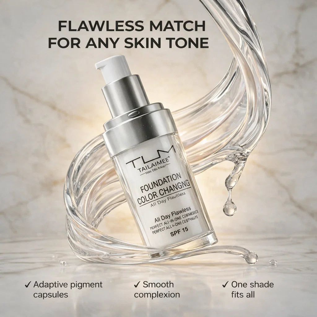 La maggior parte dei fondotinta usa un colore fisso, che può sembrare sbagliato con i cambiamenti di luce e oli della pelle.