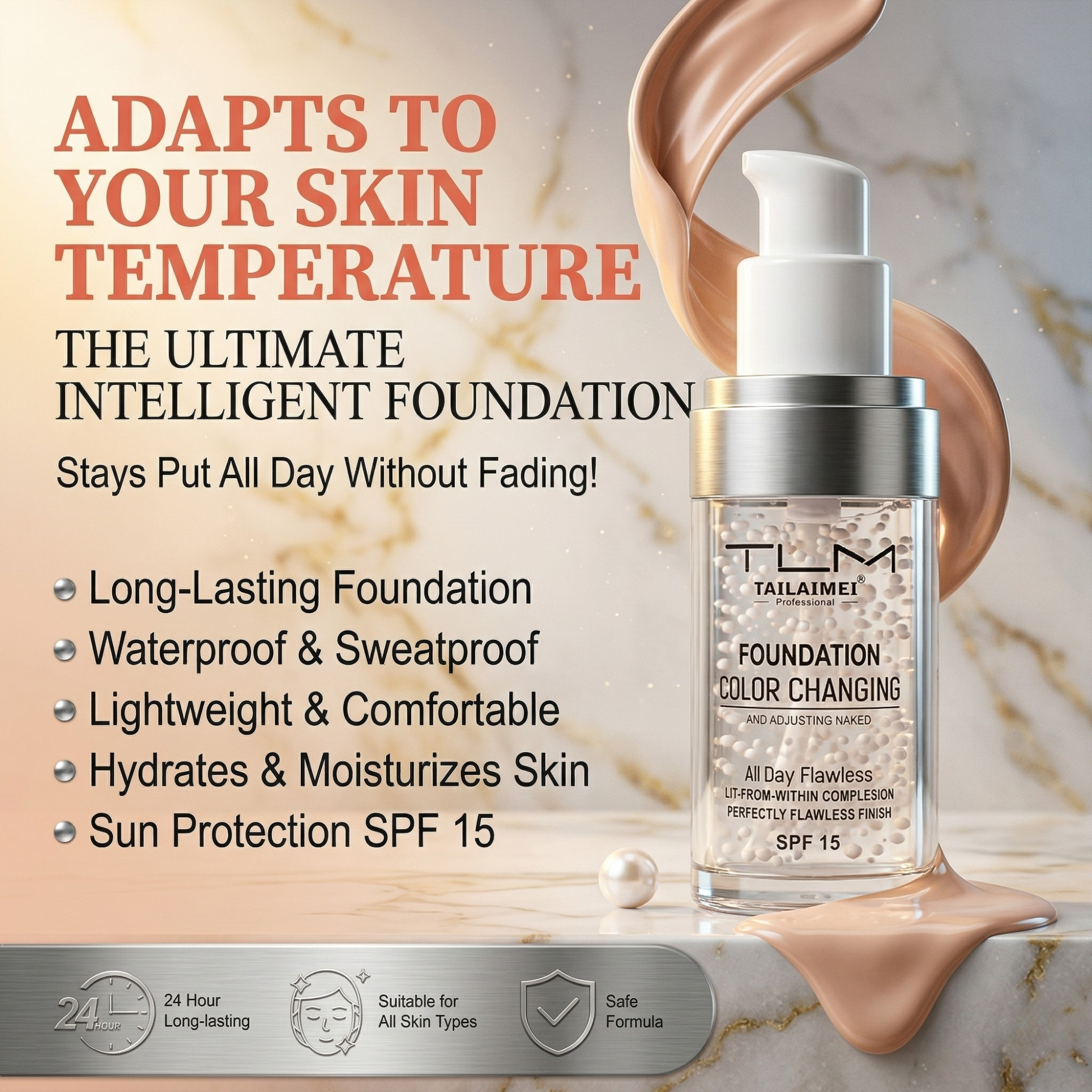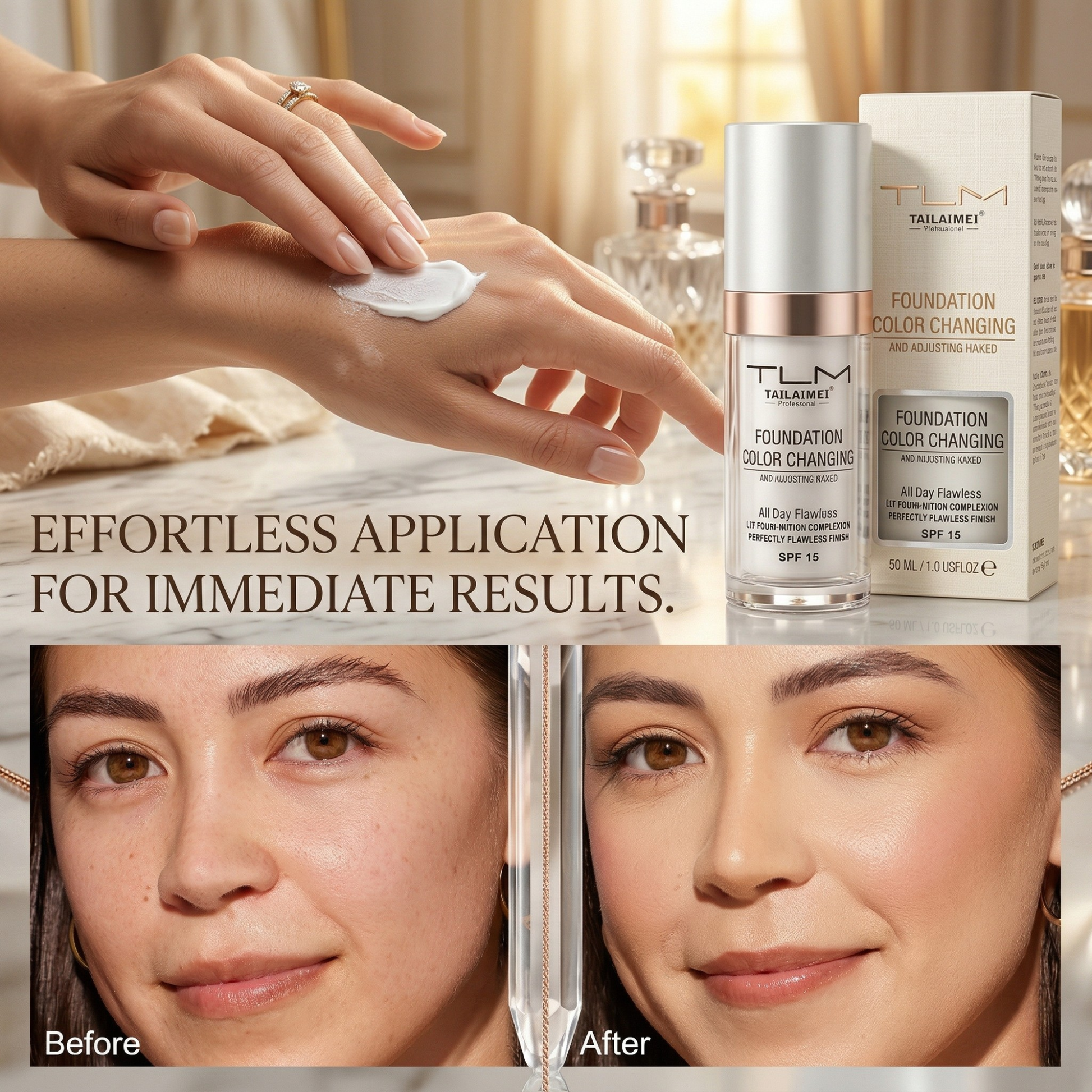 Pelle dall’aspetto naturale tutto il giorno—senza discrepanze di tonalità.