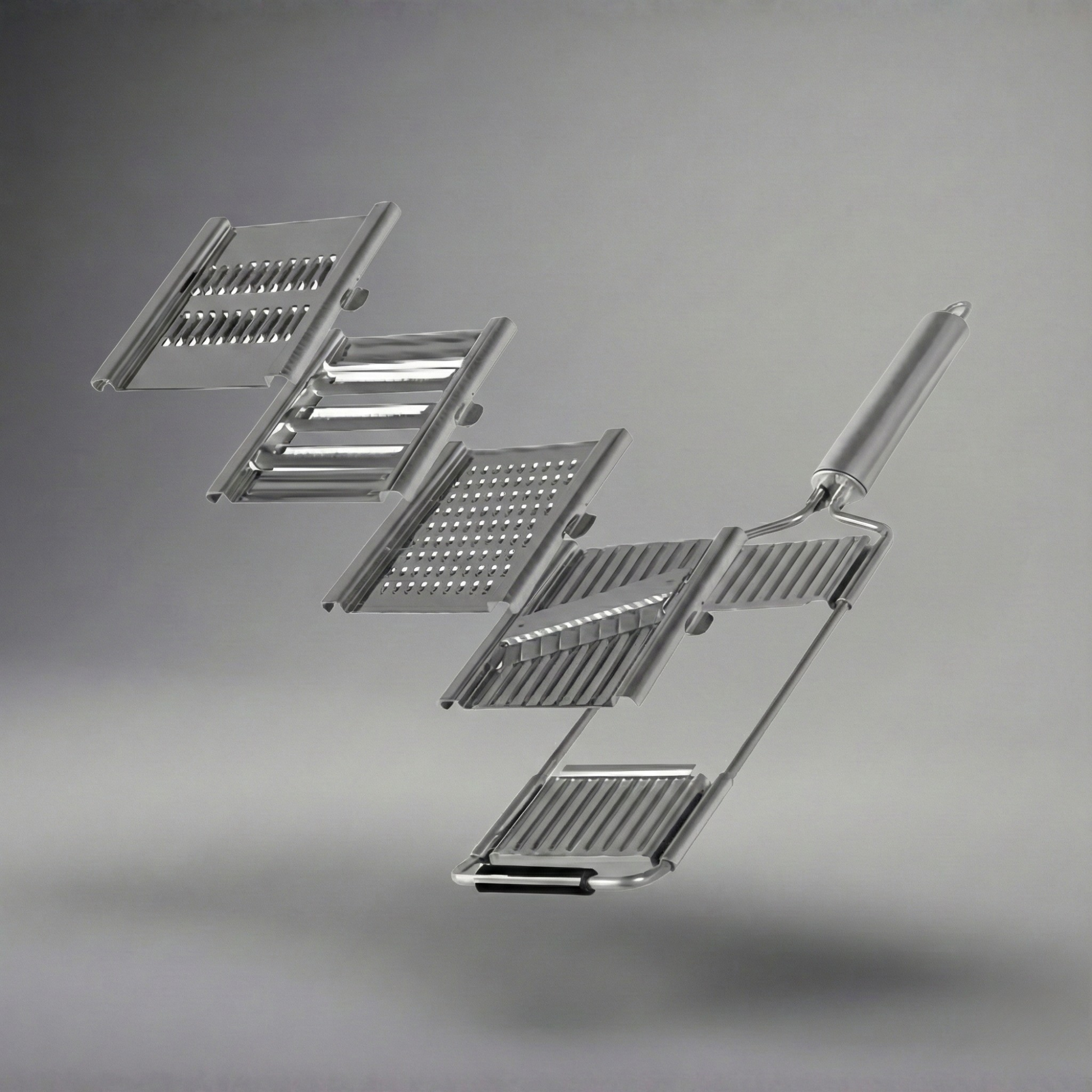 Questo multi-affettatore semplifica la preparazione tagliando in modo uniforme con una sola pressione controllata. Invece di colpi ripetuti con il coltello, la griglia multi-lama affetta le verdure rapidamente e in modo costante, aiutando a ridurre l’affaticamento delle mani e risparmiando tempo in cucina.